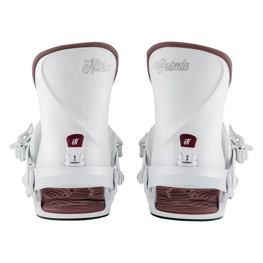 The women´s Cosmic binding offers a universal minimalistic design for all-terrain fun, with its forgiving flex and easy-to-use features, for women who love turning, pow slashing, and tweaking their way through the marked runs. The new Women´s Trans-mission Base Frame holds your boots seamlessly, while the EVA Dampening and new Premium Comfort ankle strap keep your feet comfortable no matter how choppy the conditions are. Then, strap into a pair of the women´s Cosmic snowboard bindings to experience a pillow-like cushioning and a fit so good it has to be from another universe. Finally, take your riding levels easily and comfortably past the cosmos – with the Cosmics!